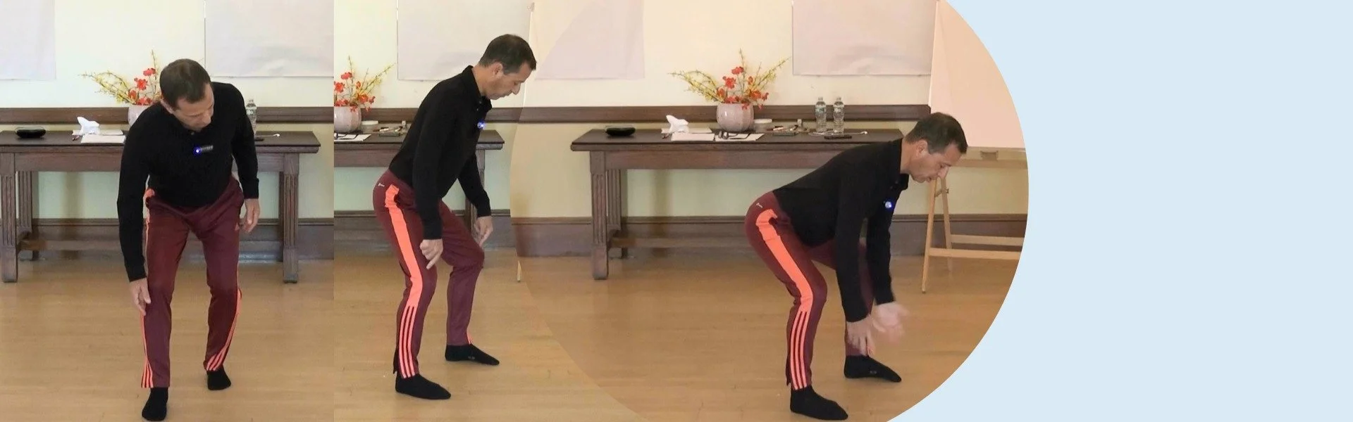 This workshop takes place mostly in a variety of dynamic standing situations. Special emphasis will be placed on strengthening and mobilizing the musculature of the upper legs and gluteal area.